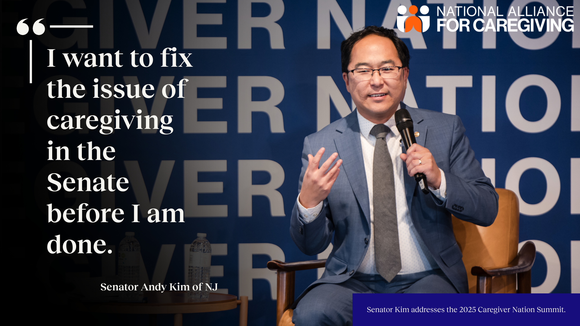Senator Andy Kim took the stage and spoke about caring for his father while serving in the Senate—the exhaustion, the impossible choices, the weight of the “sandwich generation.” Then he made a pledge: to champion family caregivers and build a care movement while in the Senate. “This experience,” he said, “has profoundly impacted my understanding of just what so many people are going through.”